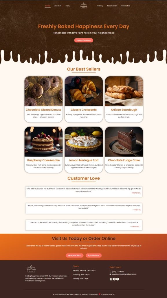 Sweet Crumbs Bakery where every bite is fresh, flavorful, and made with love. From cakes to pastries, we turn sweet moments into lasting memories.